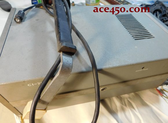 Для переноски осциллографа предусмотрена металлическая ручка с фиксаторами в нескольких положениях. Если завести ручку под осциллограф то передняя часть его немного приподнимается и опирается на ручку переноски, для удобства пользования