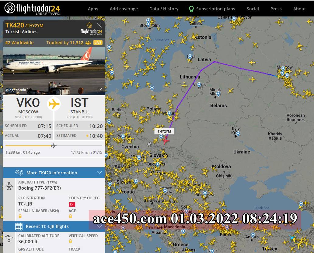 Самолет-разведчик ВВС США ведет разведку у западной границы Молдовы — Украина уже не в приоритете Турецкая гражданская авиация совершает полеты в Москву и обратно над территорией Латвии, Литвы и Польши