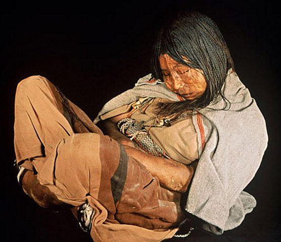 Девочка-подросток 14-15 лет, которую принесли в жертву около 500 лет назад, все минувшие столетия пролежала во льдах на вершине шеститысячника, что способствовало отличной сохранности. Рядом с ней обнаружили замороженные тела еще двух юных жертв: семилетнего мальчика и шестилетней девочки.