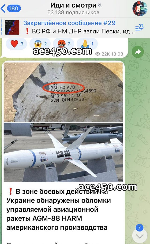 В телеграмм-каналах как-то незаметно проскочило сообщение о том что на Юго-Востоке Украины обнаружены обломки антирадарной американской ракеты AGM-88 HARM