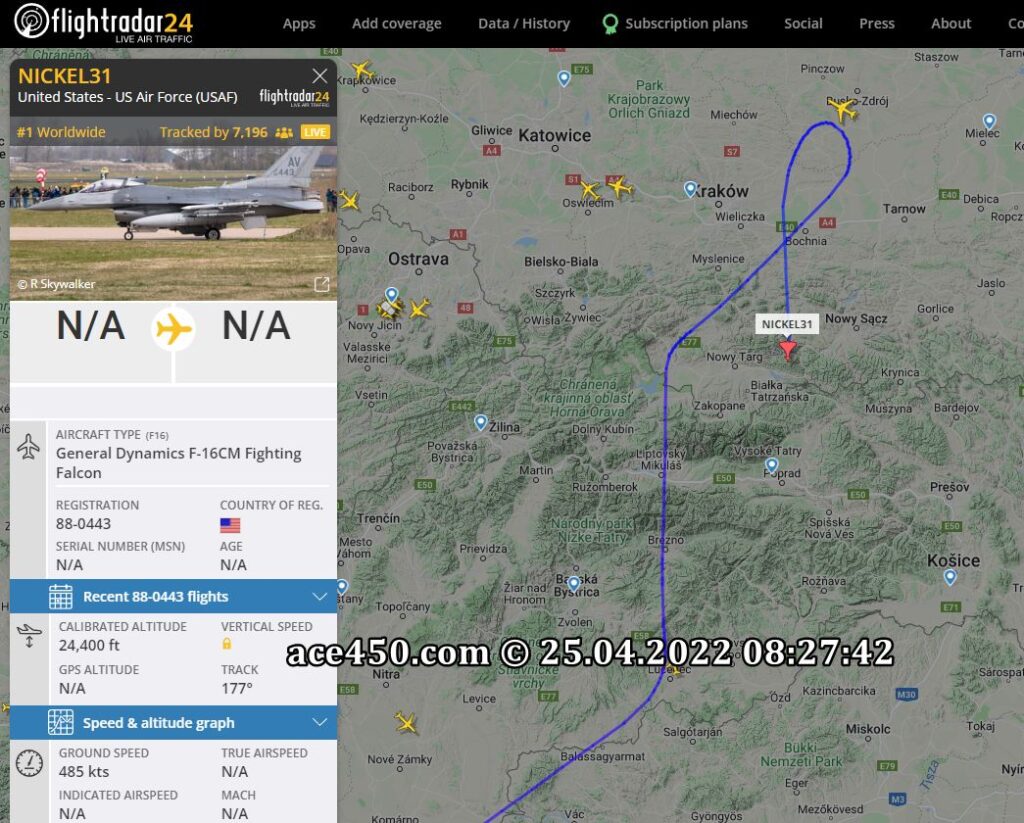 Надо сказать что после выхода в операционный район в Польше американский истребитель F-16 отключил транспондер и вышел из отображения на Флайтрадаре