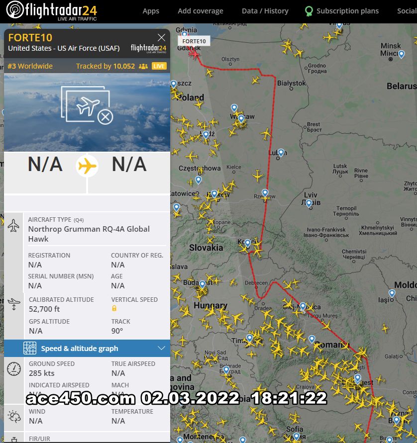 Американские разведывательные самолеты патрулируют только восточную границу блока НАТО НАТО и США отступили от Украины — патрулирование и разведка ведется только вдоль границы НАТО с Украиной Американский беспилотник с позывным FORTE10 ведет разведку исключительно вдоль восточной границы НАТО с Украиной 00