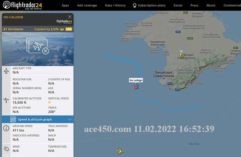 У южного и западного побережья Крыма осуществляет разведывательный полет неизвестный летательный аппарат.