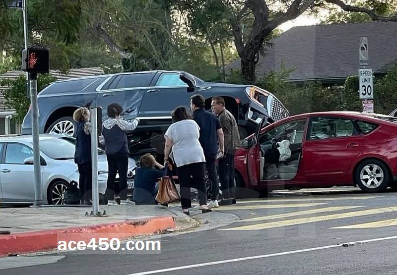 На этот раз терминатор потерял контроль над железом и его черный внедорожник Yukon столкнулся с красным Prius.