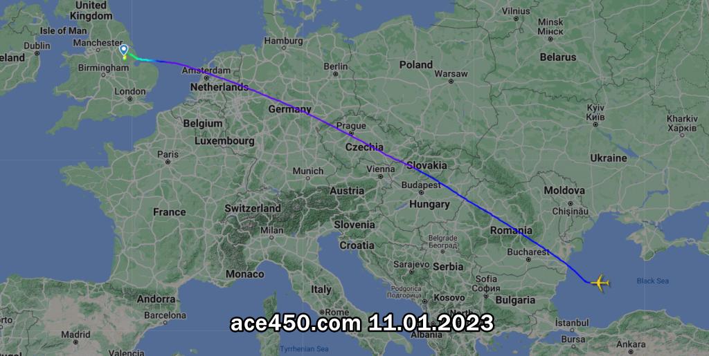 Схема полета самолета-разведчика Boeing RC-135W Rivet Joint над Черным морем у берегов Крыма во время беспрецендентной потери высоты полета 11 января 2023 года