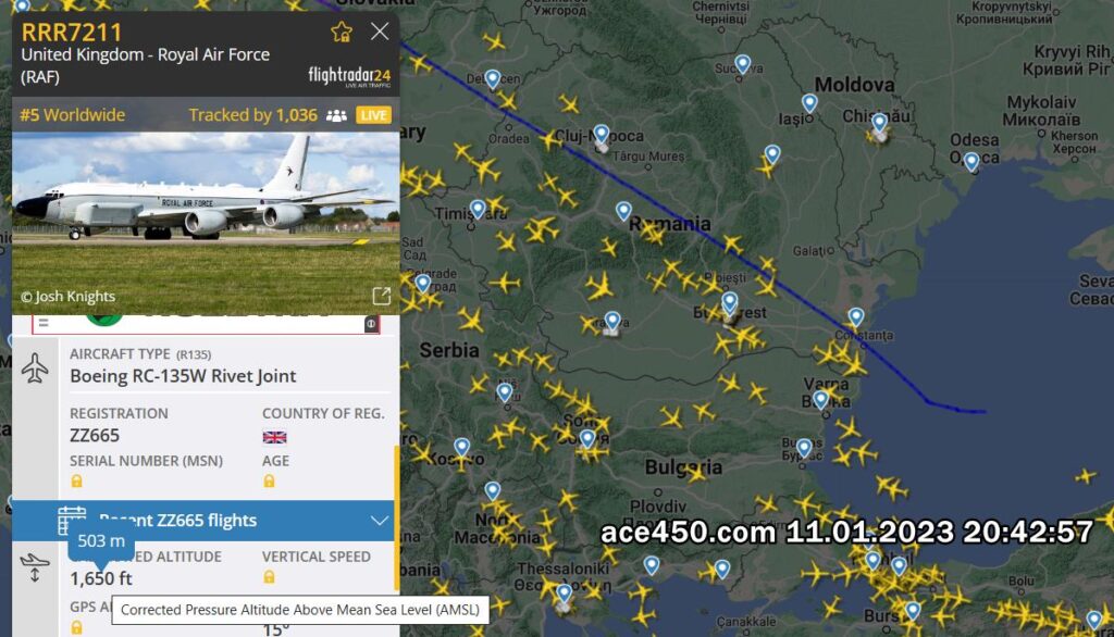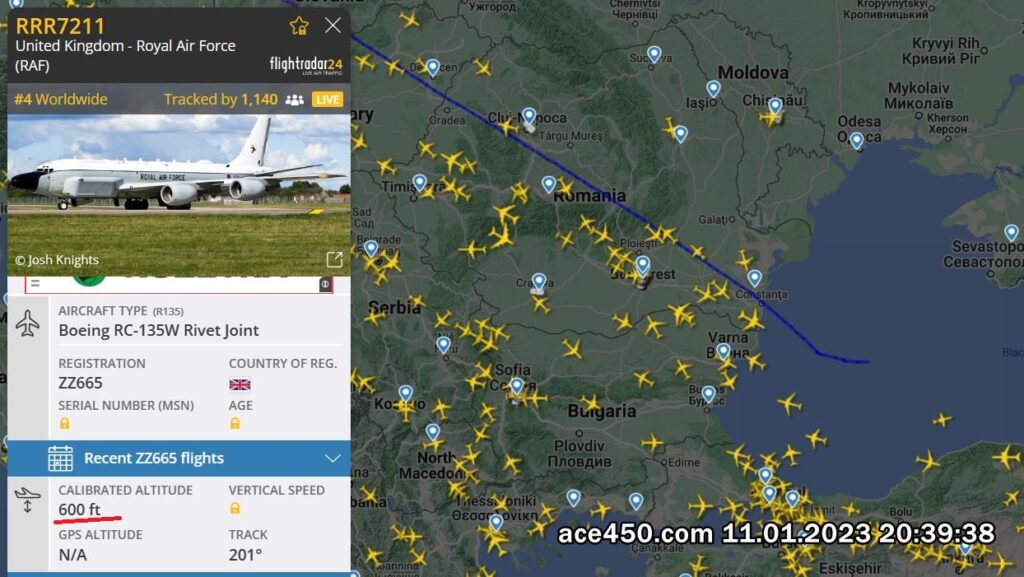 Boeing RC-135W Rivet Joint снизился практически до уровня Черного моря — высота полета самолета-разведчика составила 600 футов или 200 метров что является беспрецендентным во время всех полетов самолетов НАТО
