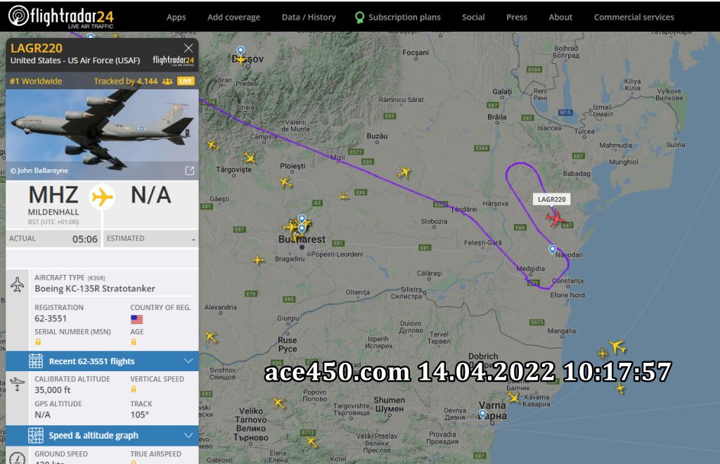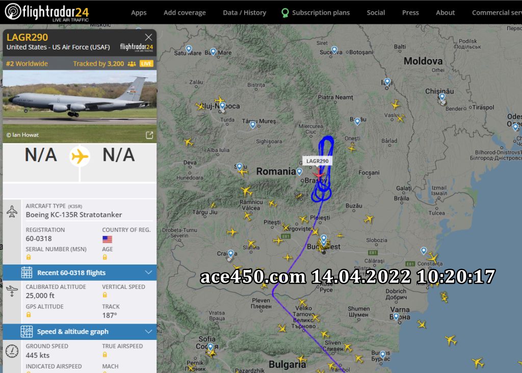 Уже второй летающий топливозаправщик воздушного флота США на боевой позиции над территорией Румынии у границы с Молдовой