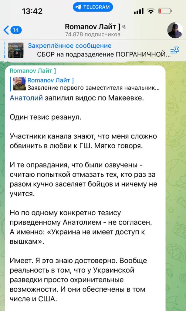 Буданов слушает разговоры российских мобиков Такой вывод можно сделать из сообщения г-на Романова, пророссийского блогера из Крыма, опубликованному в связи с массовой гибелью российских солдан в Макеевке 00