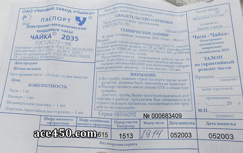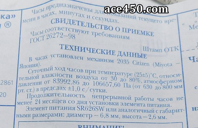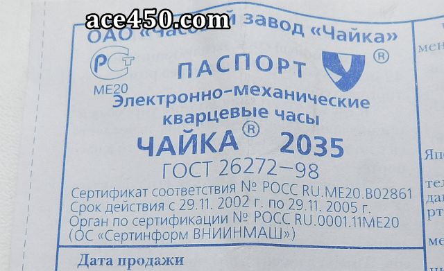 В часах Чайка 2035 был установлен высококачественный японский механизм часов типа 2035