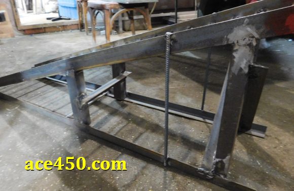 Также дополнительно в середине длины конструкции подъемной рампы расположена поперечина из 35 уголка. Она служит для увеличения жесткости конструкции.