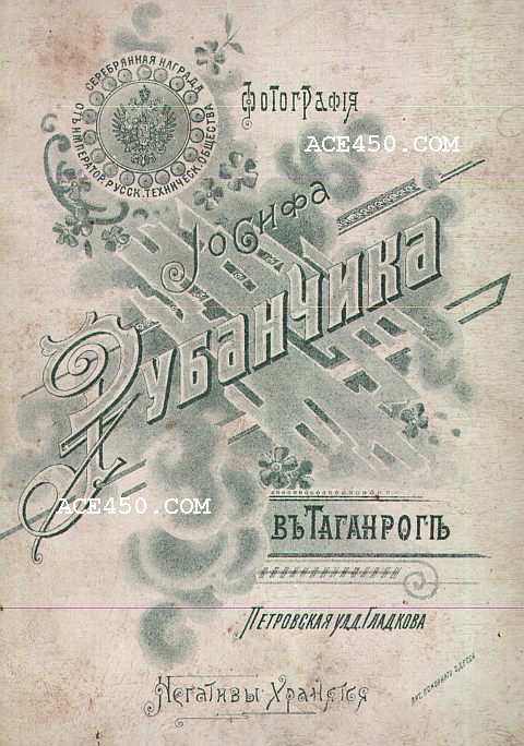 Фотография Иосифа Рубанчика. Паспарту таганрогского фотографа начала 20-го века. Петровская ул. дом Гладкова. Серебряная награда от императорского русского технического общества. Негативы хранятся.