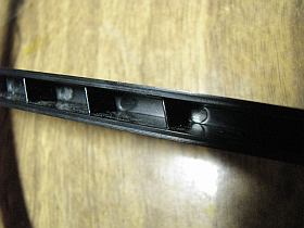 Внешнее кольцо катушки соединено с центральным стеблем одним залитым пластиком каналом(с соединительными проводами от обмотки) и тремя пустотелыми каналами, внутри которых находятся ребра жесткости. Здесь с моей точки зрения эти три канала следовало бы тоже залить пластиком. Под ребра жесткости непременно будет набиваться грунт и если в этом грунте случайно окажется окалина, мелкие кусочки металла или минерализированный грунт то неизвестно как на это отреагирует катушка. Кроме того МД зачастую перевозится в чехле, в разобранном виде и источник лишнего мусора там в принципе не нужен, там и так после нескольких выездов хватает пыли и грязи. Заливать пеной или силиконом я не стал, все-таки гарантия, но на всякий случай замотал эти каналы изолентой. Так как-то вернее.