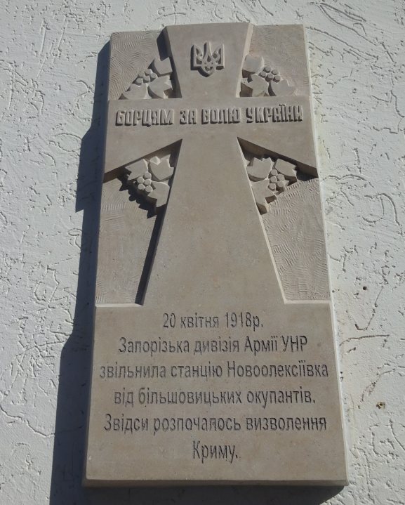 22 апреля во селе Новоалексеевка Херсонской области состоялось открытие мемориальной доски в честь Запорожской дивизии Армии УНР, которая 100 лет назад с боями вошла в Крым.