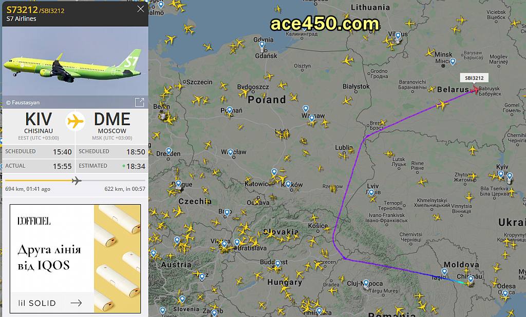 Итак, рейс Кишенев-Москва летит тщательно огибая воздушное пространство Украины