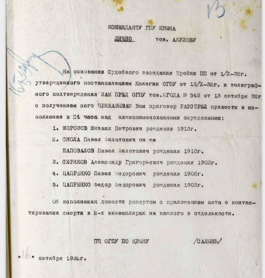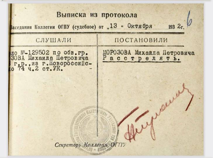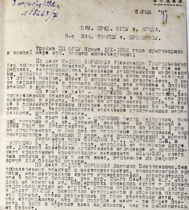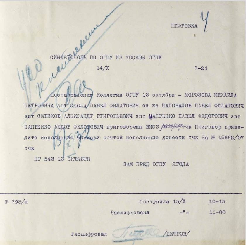 За что же тройка ОГПУ приговорила их к расстрелу. Читаем докладную записку тов.Ягоде.