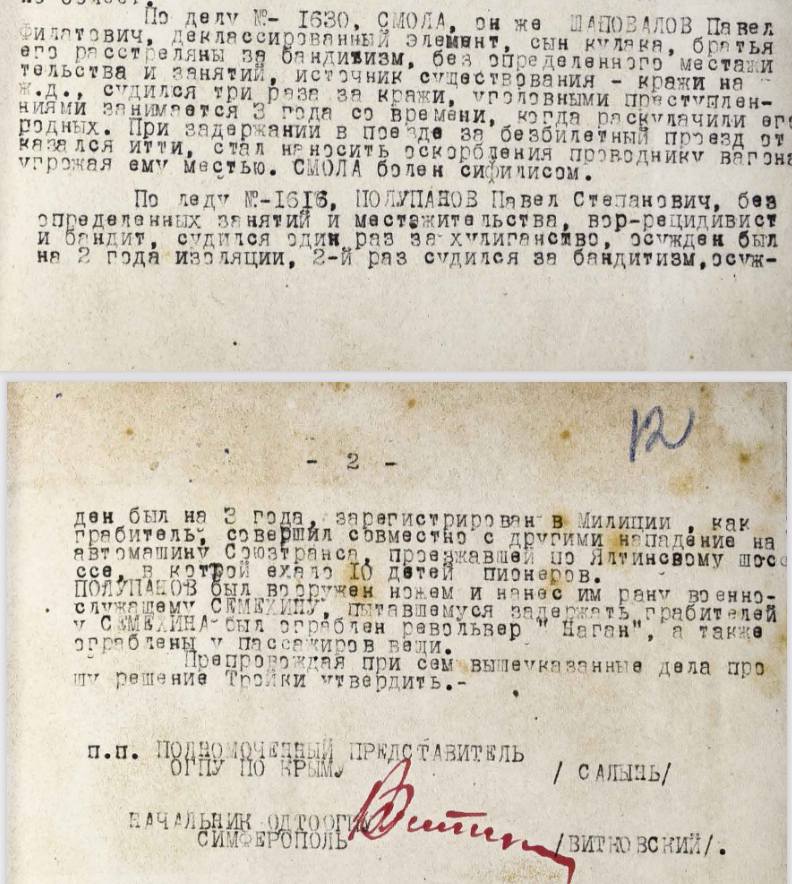 И последний персонаж докладной ОГПУ — Полупанов Павел Степанович. Вор-рецедивист и бандит, которому уже давали шанс исправиться в лагерях, куда его помещали на три года.