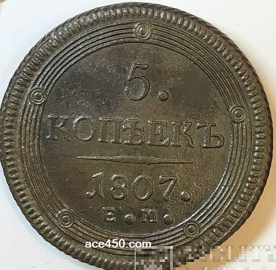 Монета кольцевик — пять копеек 1807 года это одна из редких и желанных для поисковика медных монет времен правления Александра Первого.