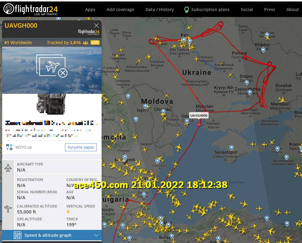Сообщается что ранее позывной UAVGH000 был зафиксирован как принадлежащий разведывательному стратегическому дрону воздушного флота США RQ-4А Global Hawk