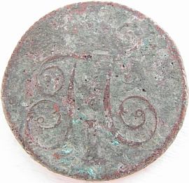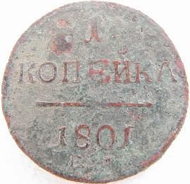 Монета помыта водой, зачищена плоским шабером. От химии решено отказаться т.к. именно в таком виде имхо чувствуется возраст находки. Видно что монета 1801 года, виден номинал копейки, виден вензель императора. Неплохо сохранился сетчатый гурт.