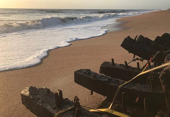 В американском штате Флорида на пляж курорта Понте-Ведра-Бич из океана вынесло на берег 15-метровый фрагмент корабля XVIII века, сообщает CBS47.