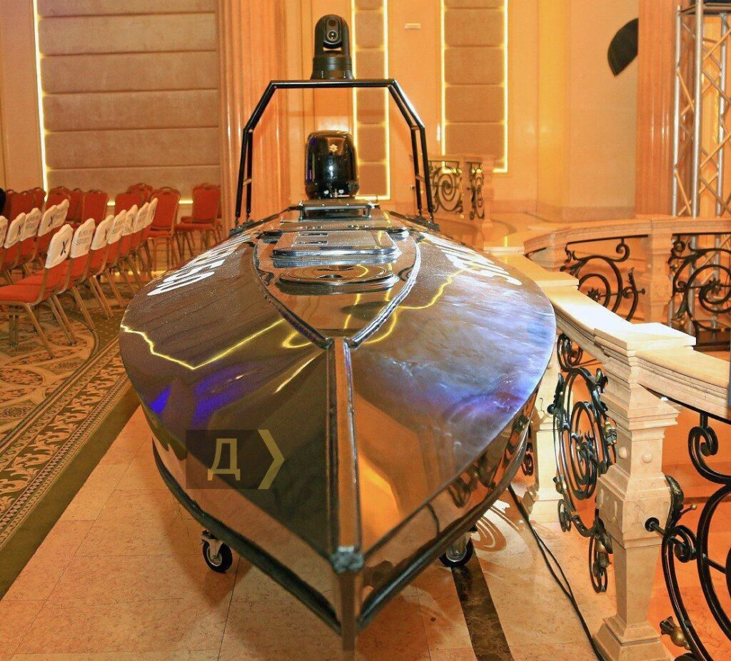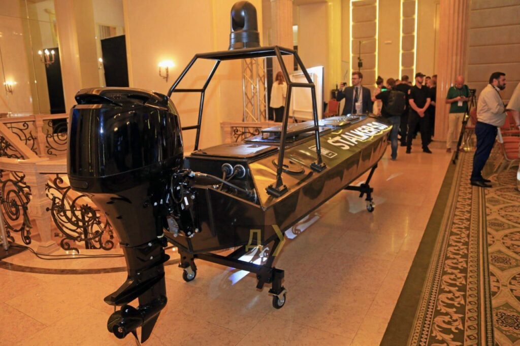 Новейший украинский морской дрон представили участникам международного форума по безопасности в черноморском регионе — Black Sea Security Forum 2024. Безэкипажный катер под названием Stalker 5.0 стоял в актовом зале, привлекая всеобщее внимание.