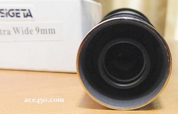 Пришел окуляр Sigeta Ultra Wide 9мм в простой картонной коробочке с двумя пластиковыми заглушками на оба конца окуляра. Да, окуляр просветлен, наблюдается легкое зеленое или зеленовато-красное просветление стекла.