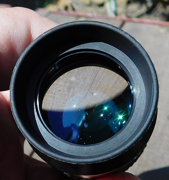 Окуляр хорошо просветлен, там есть стандартная резьба для вкручивания светофильтров. Защитная канавка от случайного выпадания окуляра из фокусера нету. Это печалит, все же этот объектив по факту бюджетного качества. Радует же то что окуляр удобен, изображение яркое, четкое и окуляр полностью выполняет свое предназначение — быть обзорным для неба.
