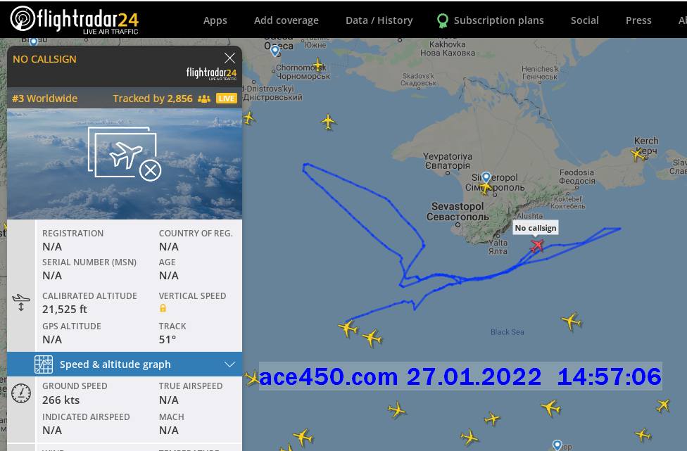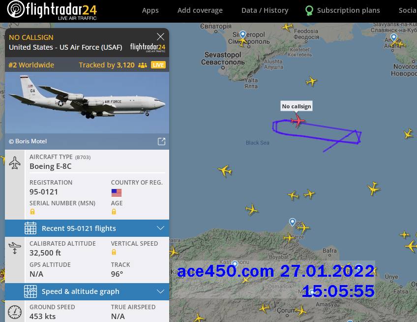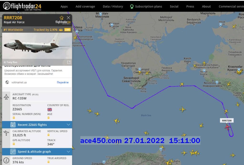Сегодня, 27 января 2022 года над Черным морем просто аншлаг разведывательных полетов самолетов стран НАТО
