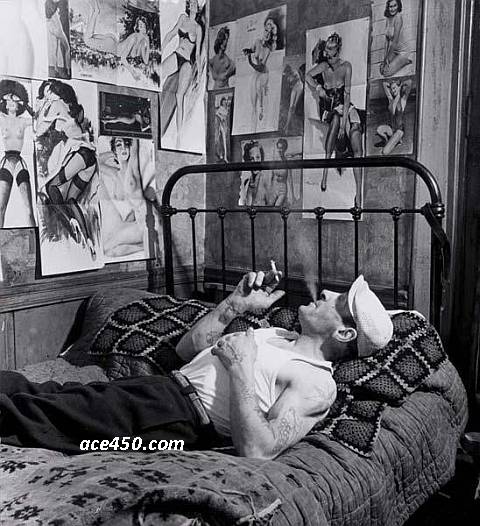 Как истинный парижанин Робер Дуано не мог не обыграть любовный сюжет. Слегка потасканный французский ловелас лежит на кровати, расслабленно курит и созерцает фото красивых дам развешанных над ложем. Что хотел этим фото сказать Робер остается загадкой, возможно Робер Дуано хотел показать природу взаимоотношений мужчина женщина через призму двойных картин ?