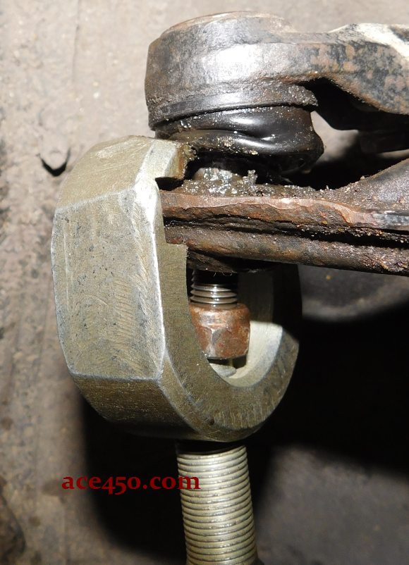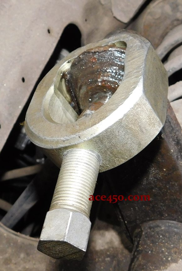 Кстати предыдущий рассмотренный съемник для классики (жигулей) использовать для съема шаровых наконечников у ланоса не получается. Опорной площадке под болт у него не хватает длины для уверенного опора и съемник постоянно съезжает в сторону