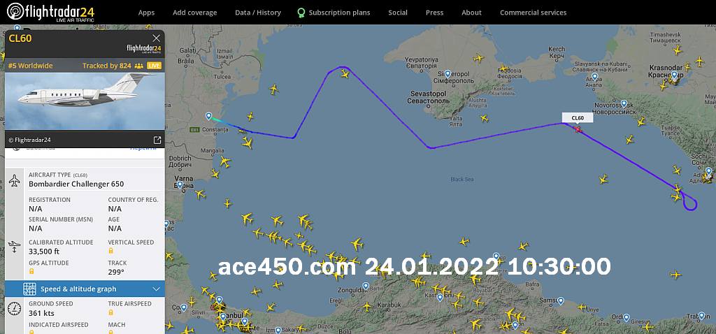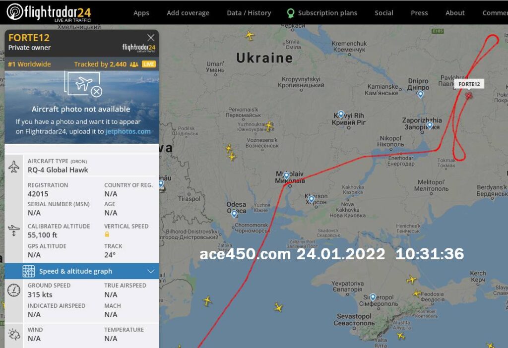 24 января 2022 года в районе предполагаемой военной агрессии России против Украины два натовских летательных аппарата внимательно следят за развитием ситуации в регионе.