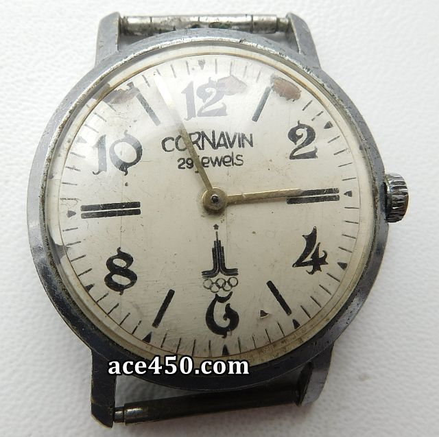 Советские часы Cornavin с олимпийской символикой 29 камней. Бренд Cornavin основан в Женеве и эти часы сделанные в СССР по факту являются совместного производства Швейцарии — СССР