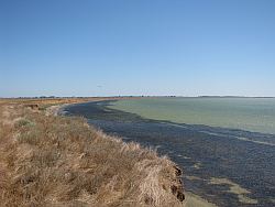 Стоянка Веснянка 5, мезолитическая. Находится в 3,2 км юго-западнее села, на песчаной косе, отделяющей залив от Сиваша. Поверхность косы над уровнем воды составляет 0,1-0,7 м.