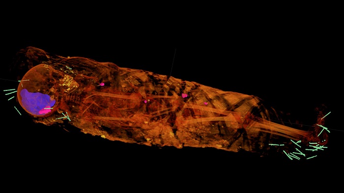 Мумия была обнаружена еще в 1910 году. Ее поместили в томограф, который и показал множество артефактов. Атомный ускоритель помог ученым понять из какого материала данные артефакты были изготовлены. Об этом пишет издание Science.