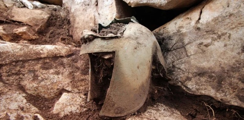 Бронзовый шлем с открытым лицом был обнаружен в пещерной гробнице IV века, богато обставленной погребальным инвентарем. Наличие шлема предполагает, что гробница принадлежала элитному воину, уверены ученые.