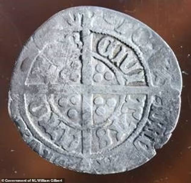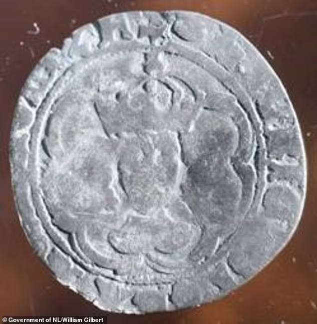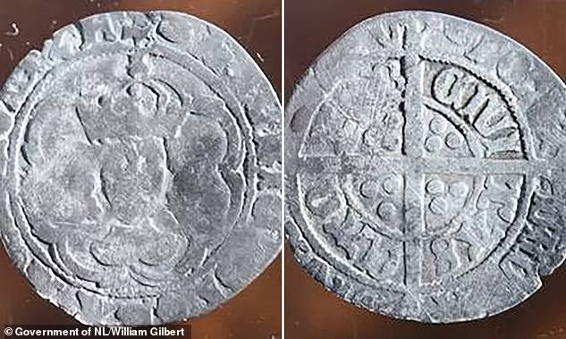 Обе стороны полугроата или двухпенсовая монета, отчеканенная в Кентербери, Англия, где-то между 1493 и 1499 годами и обнаруженна на историческом месте провинциальной плантации Купидс-Коув в 2021 году.