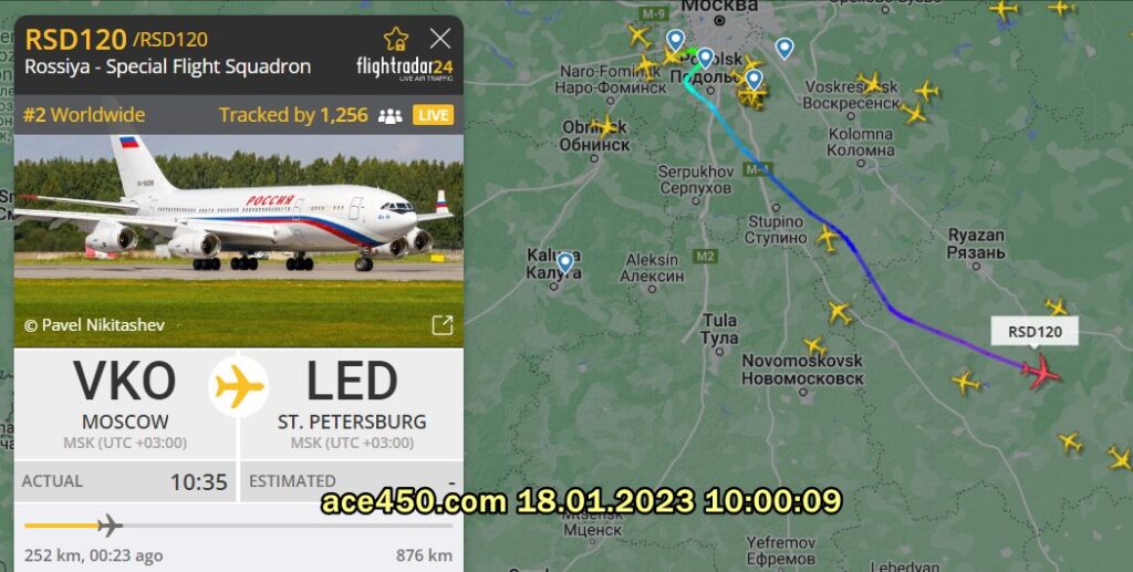 Следует отметить что при заявленном маршруте Москва — Санкт-петербург рейс RSD120 специального правительственного отряда России направляется в строго противоположную сторону от Санкт-Петербурга