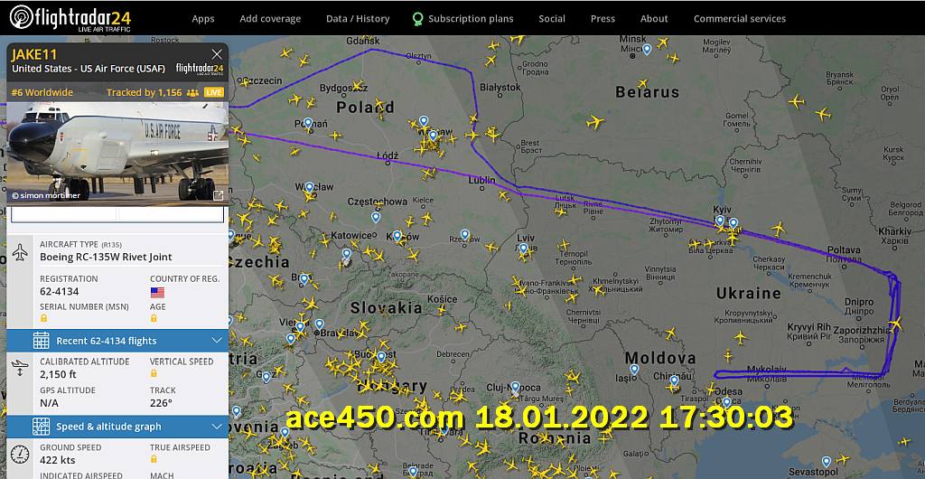 Сегодня, 18 января 2022 года в небе Украины и над Черным морем было беспрецендентное количество самолетов стран НАТО — США и Великобритании