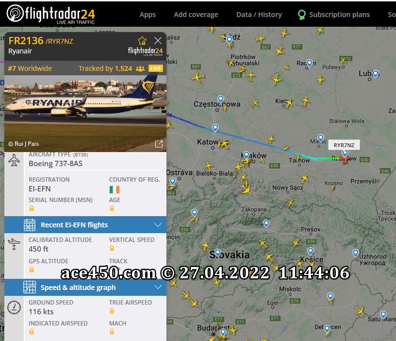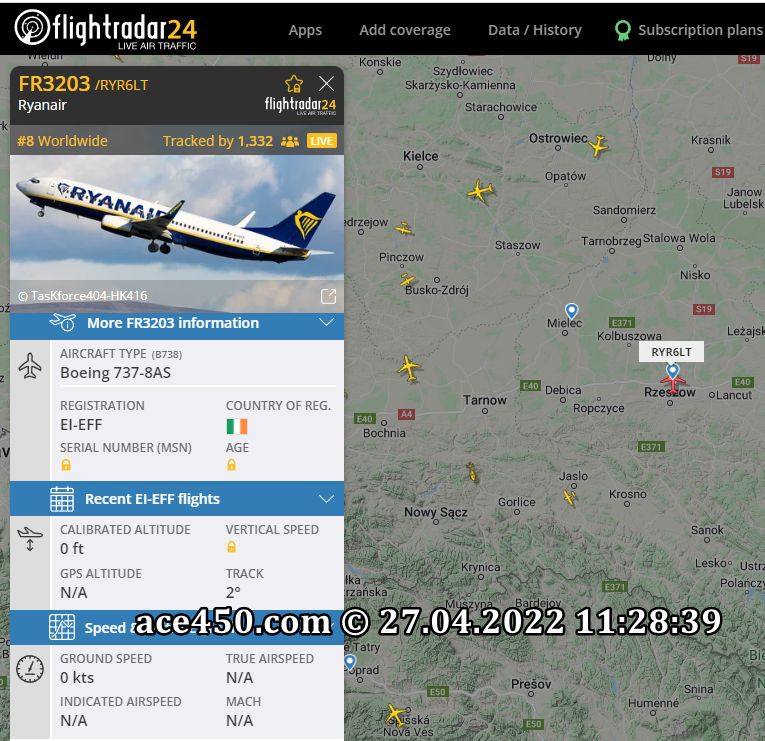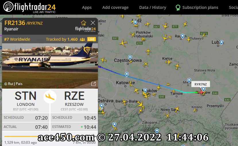 Из Жешува в Великобританию направляется Boeing 737-8AS . Польский Жешув в последние месяцы получил известность как крупнейший логистический центр поставок вооружений для вооруженных сил Украины.