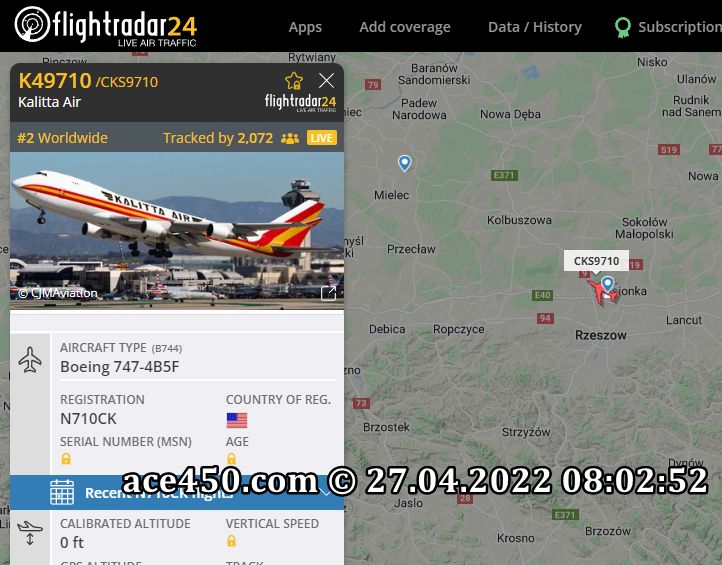 Из польского логистического центра начинает полет домой самолет гражданской транспортной кампании осуществивший доставку грузов по заказу Пентагона.