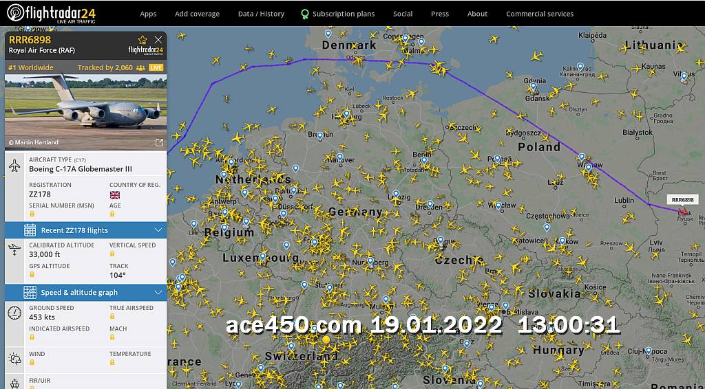 Что интересно, как и предыдущие рейсы в Украину военно-транспортная авиация Великобритании проводит в облет территории Германии.