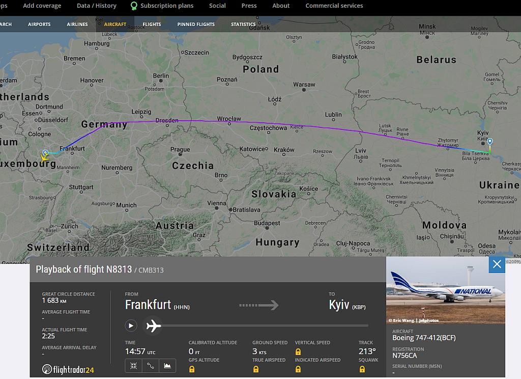 Вооружение перевозили самолетом с регистрационным знаком N756CA. Именно это воздушное судно ранее доставило в Украину и первую партию военной помощи – в ночь на 22 января.