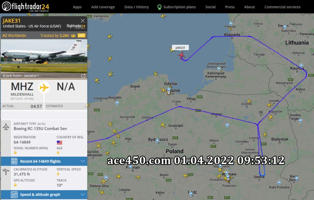 После заявления высокопоставленного отставного генерала Польши о возможности поляков предъявить претензии на территорию Восточной Пруссии которая сейчас входит в состав России как Калининградская область самолеты-разведчики США стали более внимательно изучать обстановку в этом анклаве России.