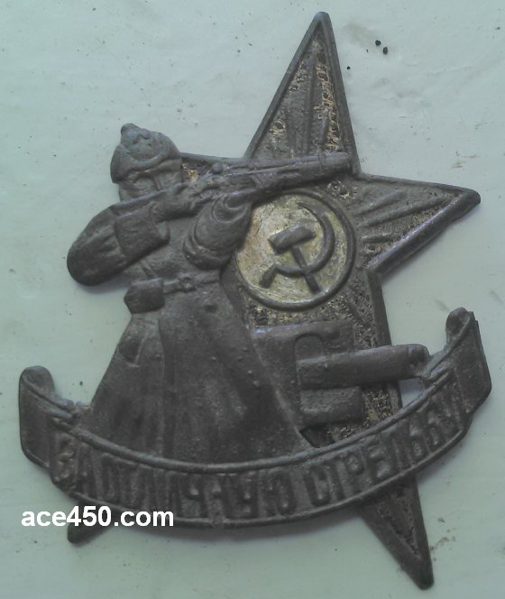 За отличную стрельбу Советский знак раннего периода СССР «За отличную стрельбу» — фото копанного артефакта За отличную стрельбу 00